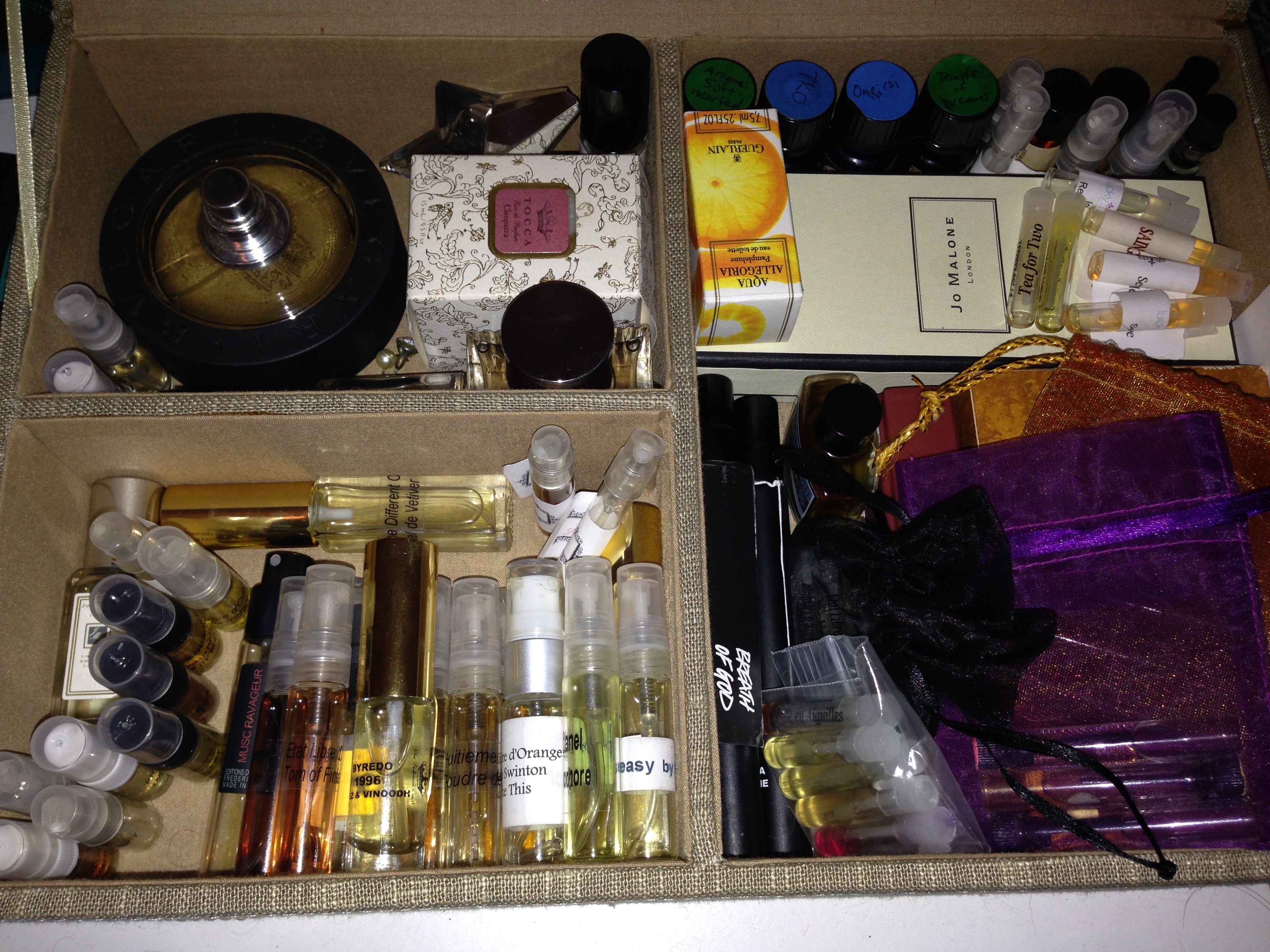 As I mentioned back at the end of December, I’ve amassed a substantial collection of perfume over the past few years, thanks to reading blog reviews and books and purchasing samples from a variety of online shops.