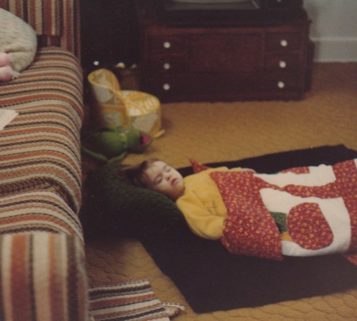 The other story that always sticks with me from the time that I spent with extended family in rural Indiana in the immediate aftermath of my mother’s death is that, one night, I fell asleep watching a movie with the other kids. I awoke to being carried up to bed by my dad’s cousin’s husband. Desperately embarrassed, I faked being asleep until he tucked me in, turned out the light, and left the room.